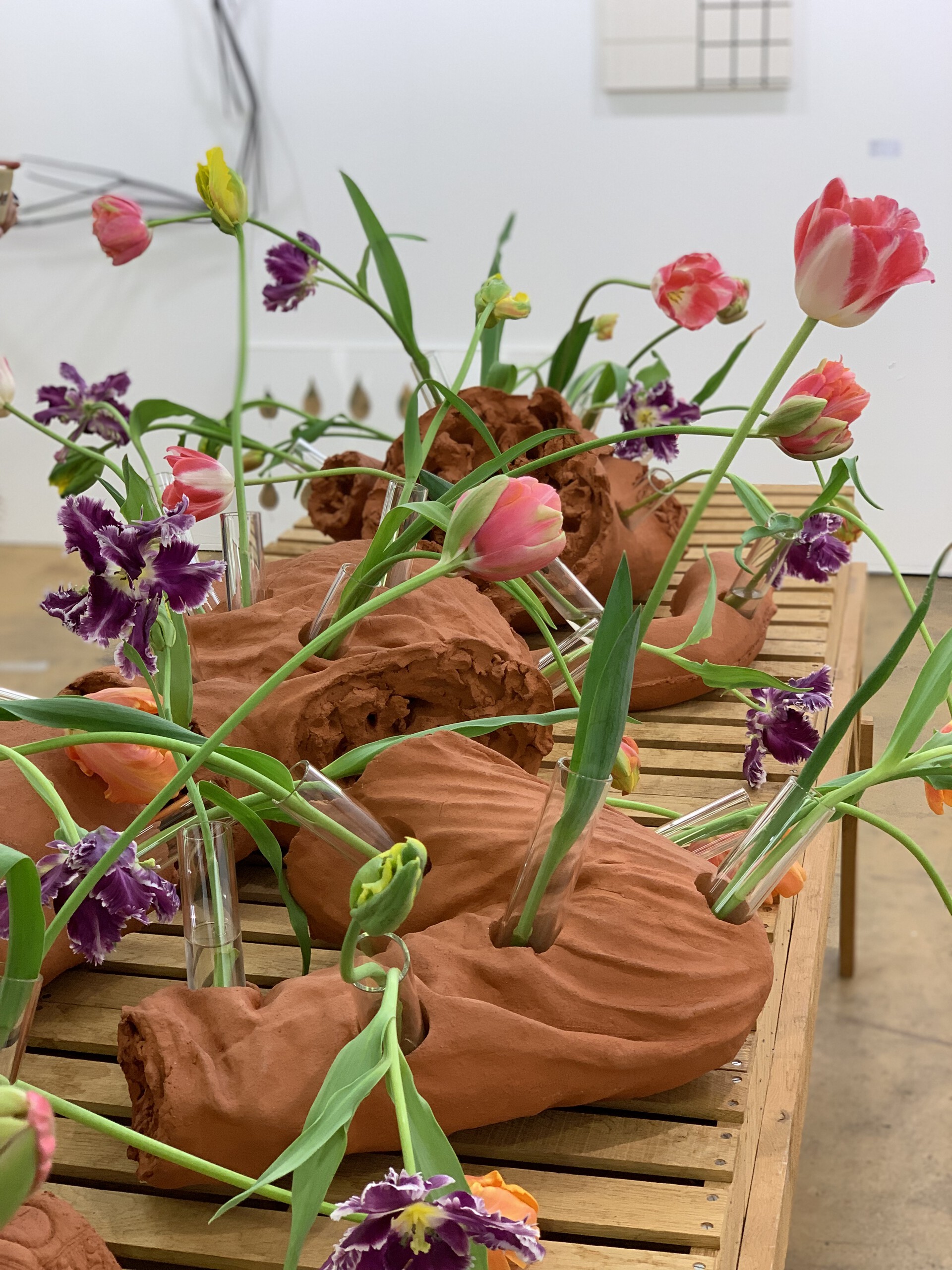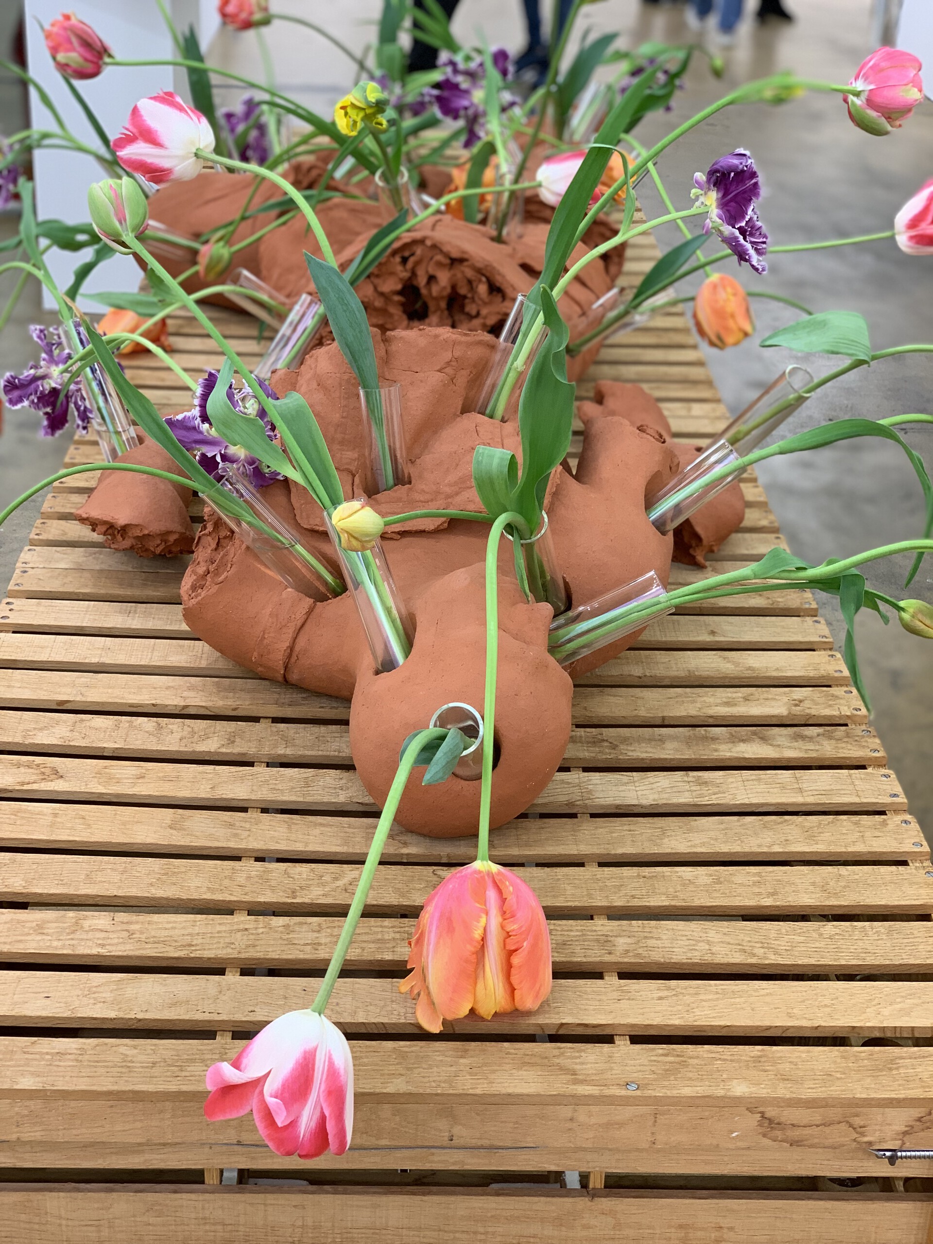 gebakken klei, glas, verse bloemen, life-size 8 delen incl sokkel (Piet Hein Eek) eikenhout
