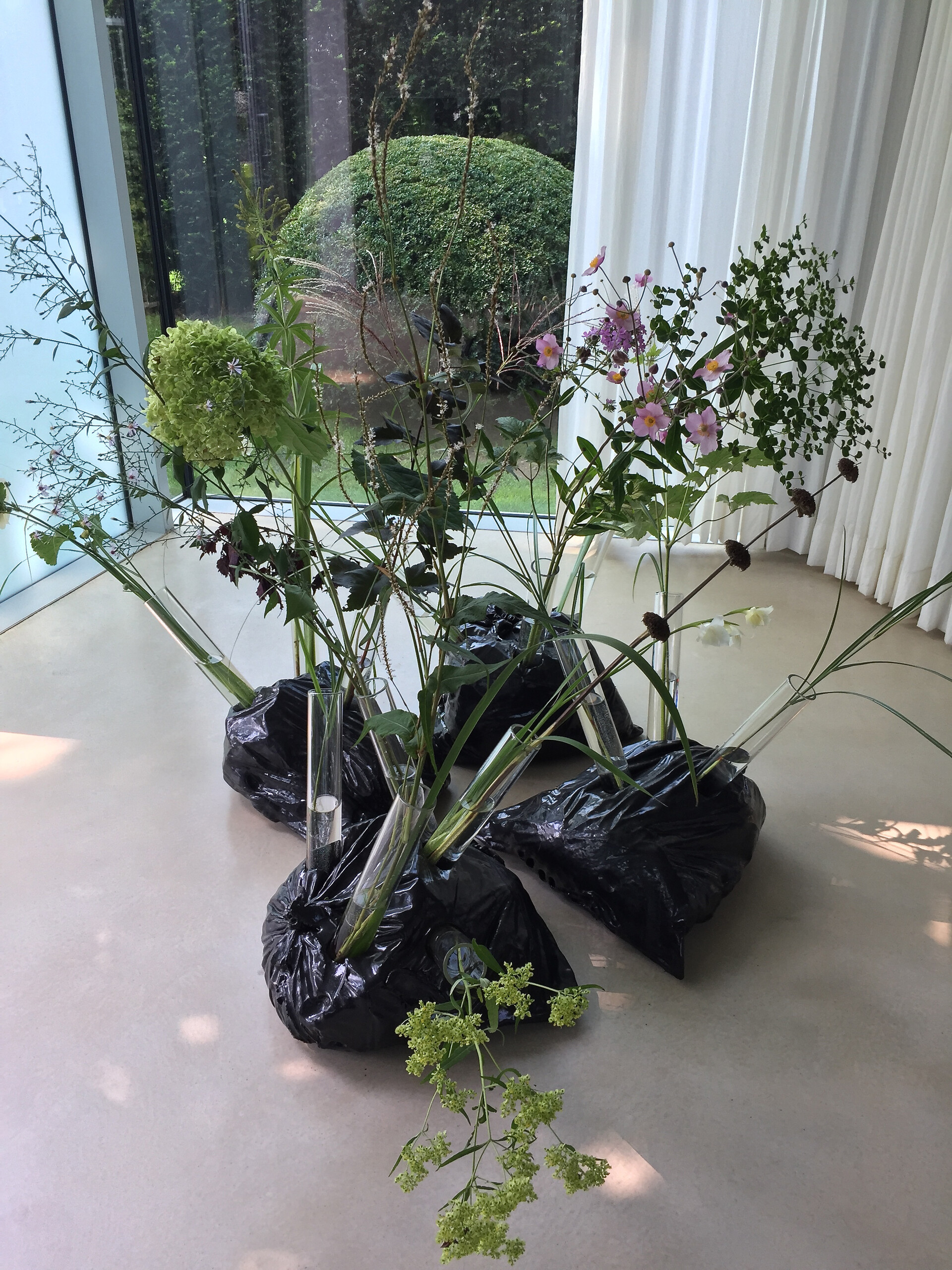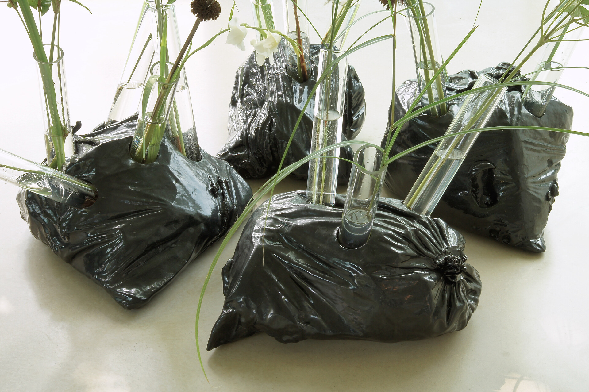 Zonder titel groep van 4 vaasbeelden vuilniszak, zwart 2016