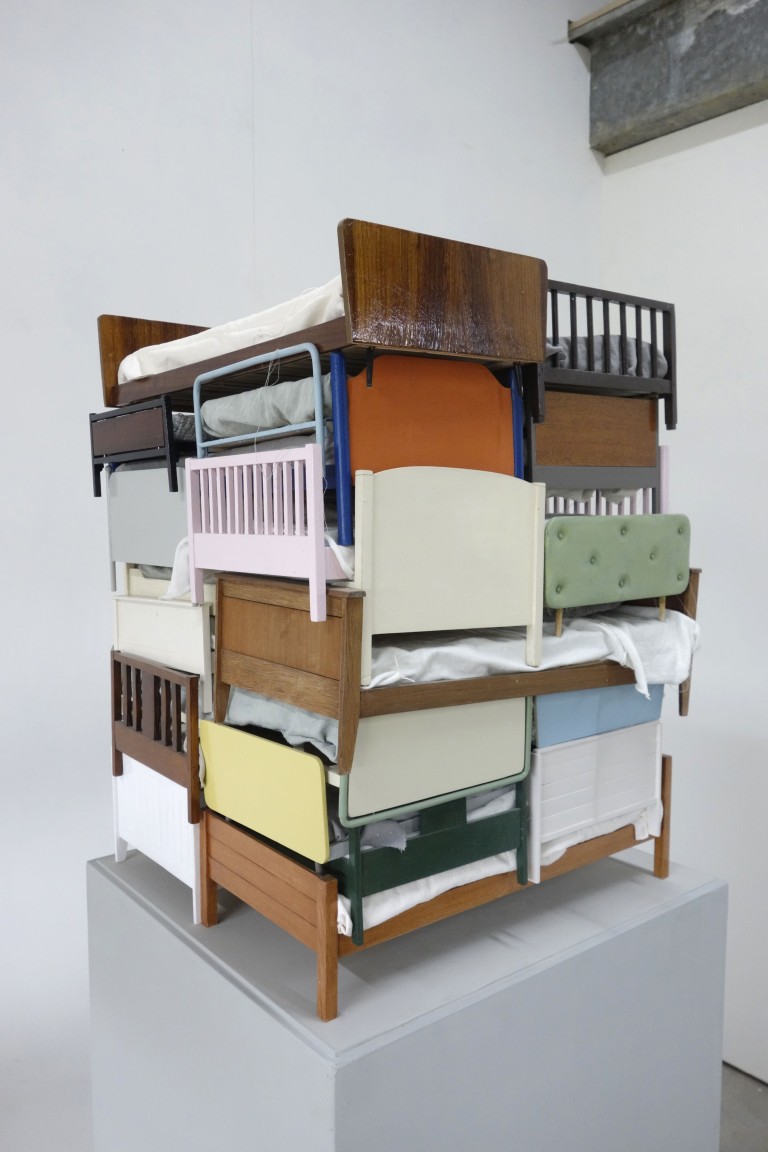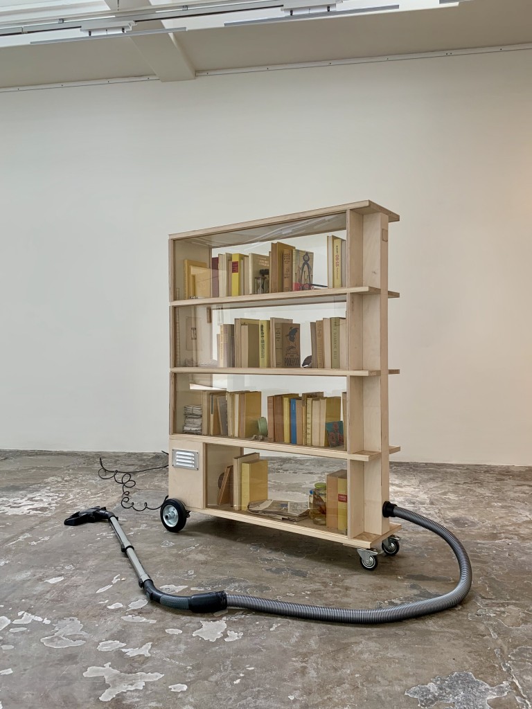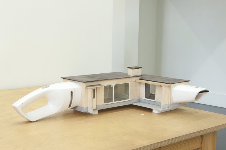 In zijn werk onderzoekt Frank Halmans (1963) vaak de huiselijke wereld en beschouwt hij een thuis als een plek waar het leven schommelt tussen een publieke en een private sfeer. Halmans gaat na hoe we als mens deze twee verschillende gebieden bewonen. Men zou de kunstenaar een 'huiskundige' kunnen noemen: hij is een volleerd timmerman, loodgieter en metselaar en weet bijgevolg alles over huizen. Binnen zijn werk echter nemen huizen of delen ervan een soort droomgestalte aan. In dit opzicht geeft zijn serie 'architecturale stofzuigers' zijn visie goed weer. De kunstenaar bouwde voor deze reeks enkele stofzuigers om tot kleine architecturale huishoudens met aparte ruimten en legde daarbij de nadruk op hun persoonlijke karakter. De kunstenaar bouwde zo machines, die we doorgaans gebruiken om onze huishoudens schoon te houden, om tot individuele en op zich staande objecten. Het vuil wordt nu doelmatig opgezogen en kan beschouwd worden als een metafoor voor alles wat we collectief verzamelen in zowel onze herinneringen als in de fysieke vertaling ervan naar objecten in ons huis.