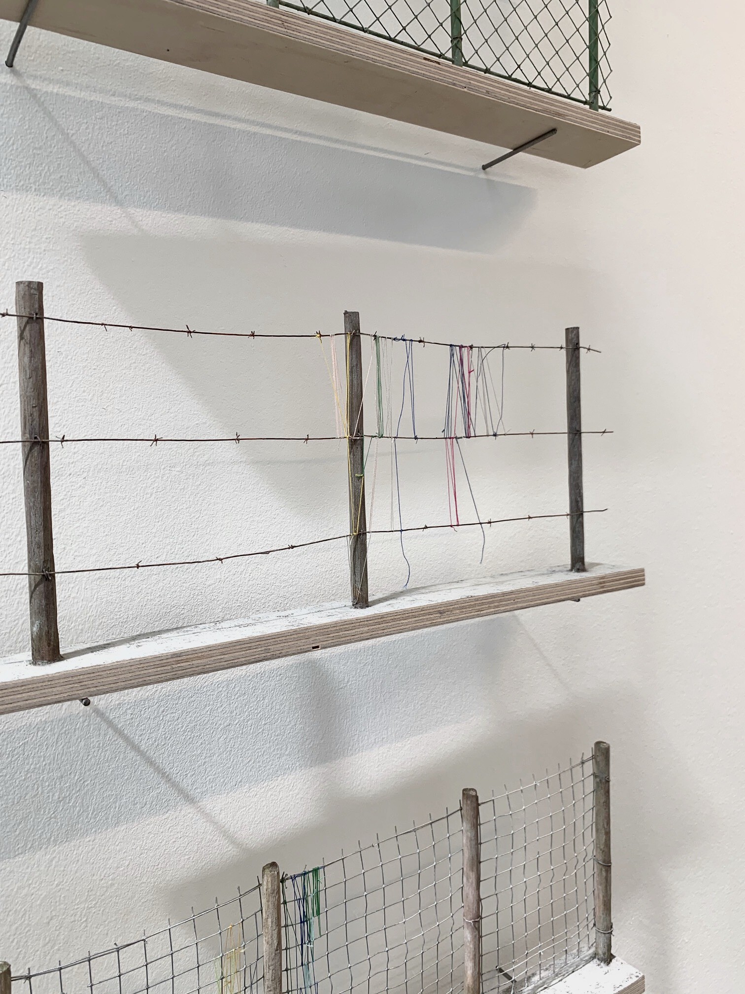 hout, gaas, draden, verf