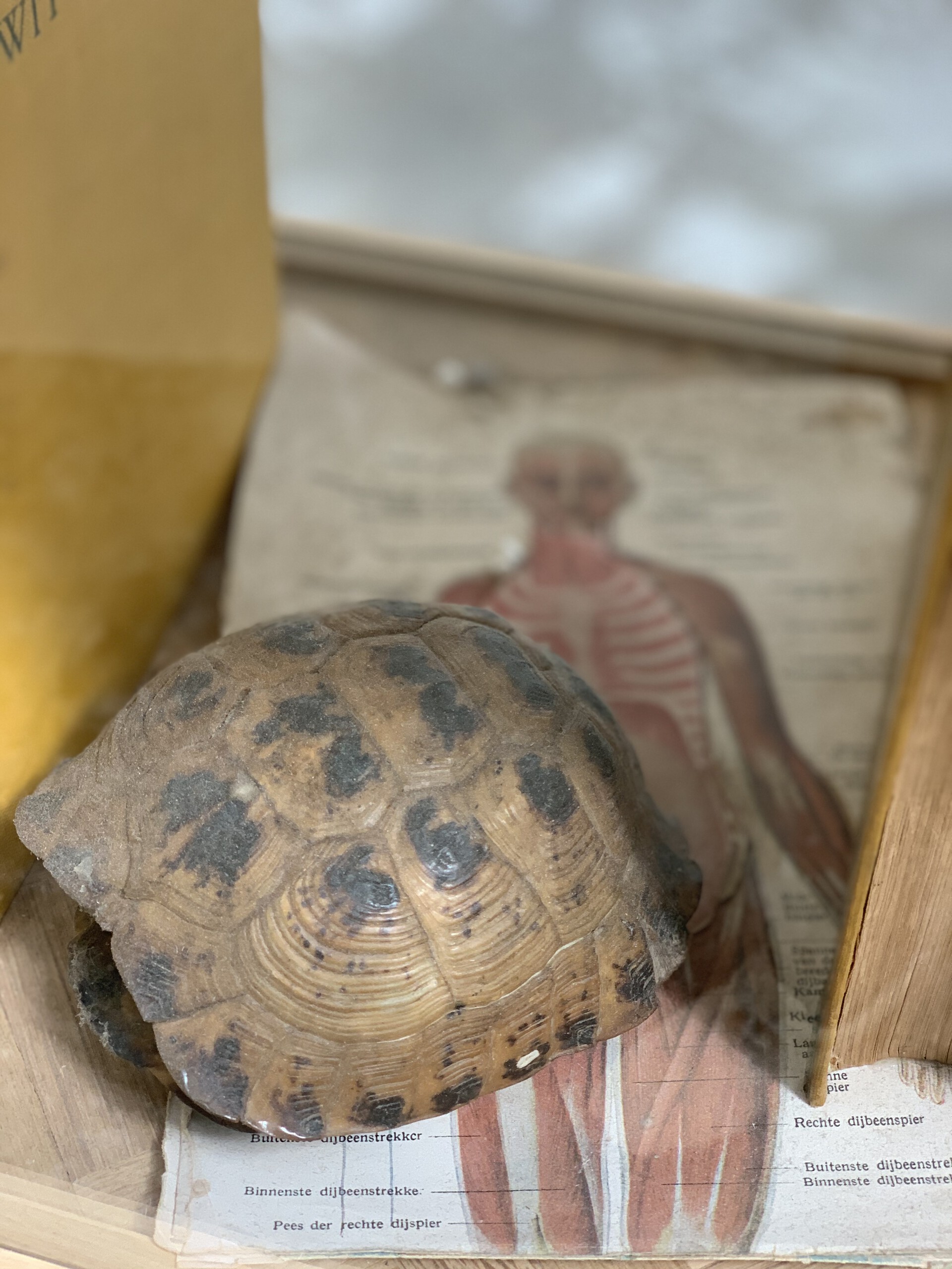 berkenmultiplex, hout, lak, glas, boeken, tekeningen, brieven, elektronica, huisstof
