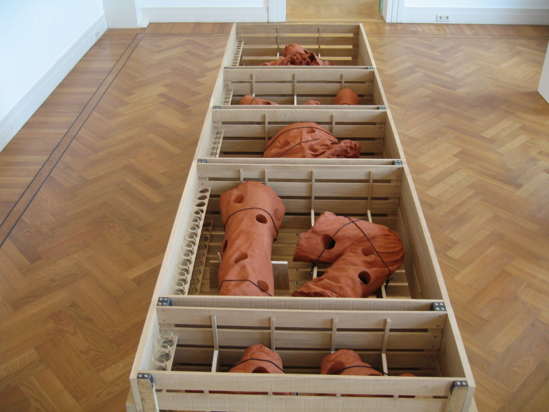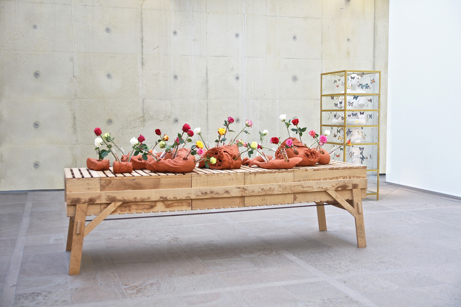 gebakken klei, glas, verse bloemen, life-size 8 delen incl sokkel (Piet Hein Eek) eikenhout