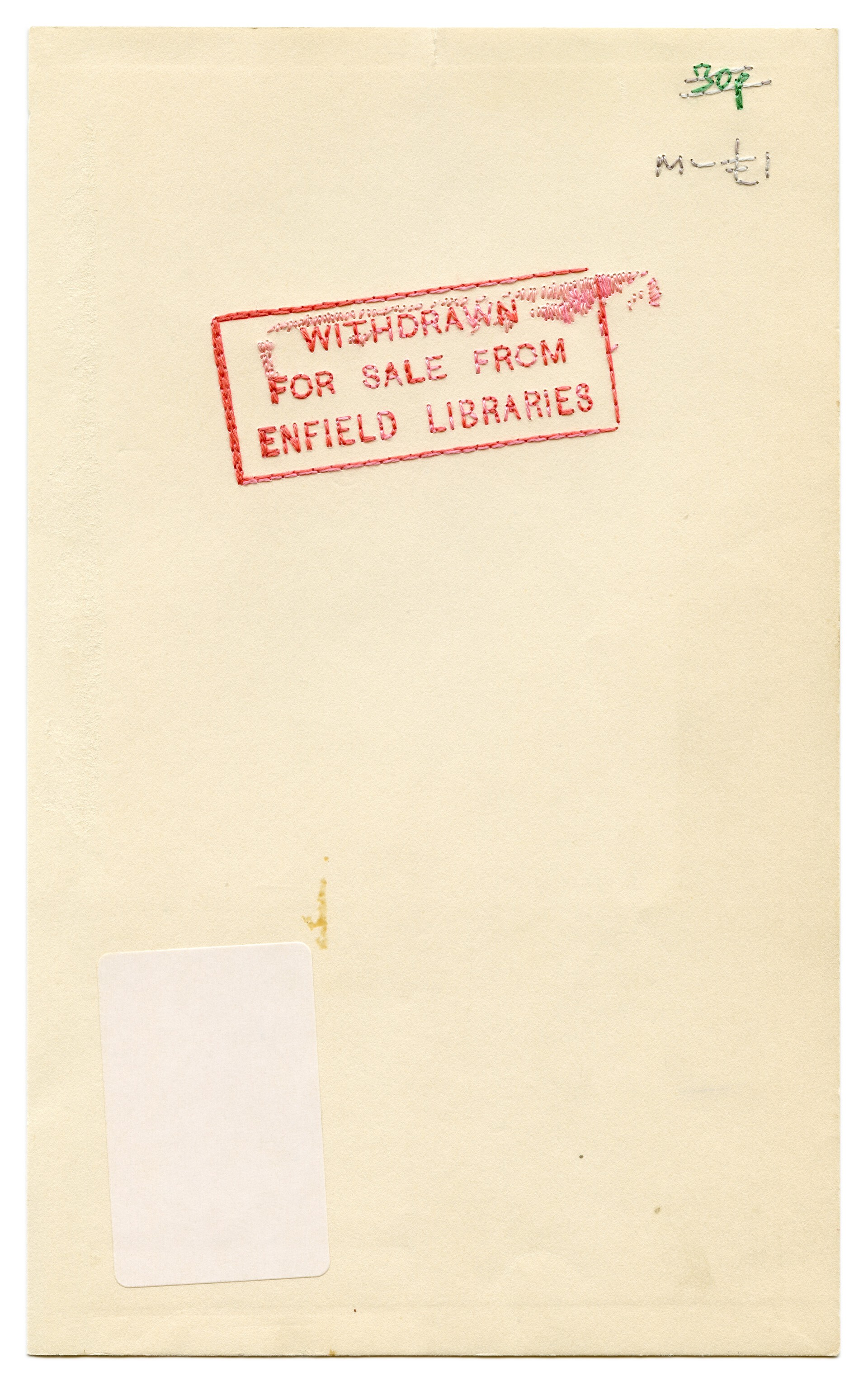 hand embroidery on found book page