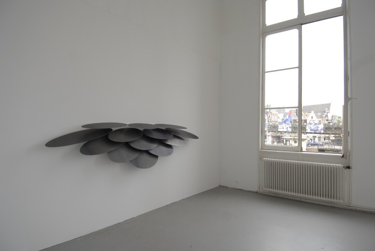 Een schilderij is hem teveel een illusie en een driedimensionaal beeld teveel realiteit. Hij heeft een tussenvorm gevonden in beelden die ruimte creëren, soms aan een muur, soms op de vloer.