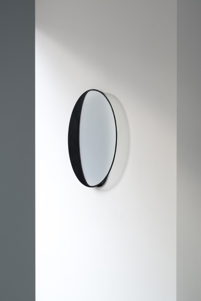 De keuze voor een materiaal hangt samen met de gekozen tekening en met de technische mogelijkheden: ijzer verwijst naar grafiet, hout is interessant vanwege de lijnen van de nerf, matglas geeft diepte.