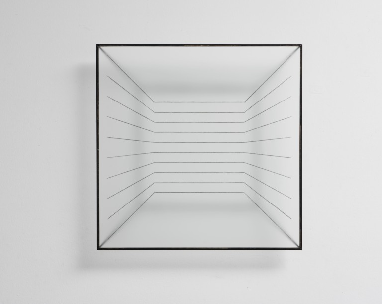 Reinoud Oudshoorn (1953) gebruikt perspectief, afkomstig uit de illusionaire taal van de schilderkunst en gebruikt die in zijn beelden. Op die manier wil hij een brug slaan tussen de ruimtelijke illusie van het platte vlak en de concrete realiteit van het driedimensionale beeld. Oudshoorn’s beelden ontstaan vanuit het staren en kijken naar een wit vlak, dat geleidelijk in een ruimte verandert. Daaruit komen tekeningen voort.