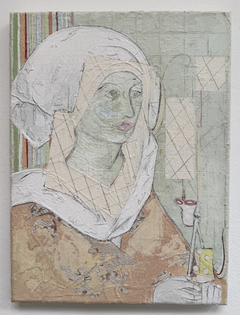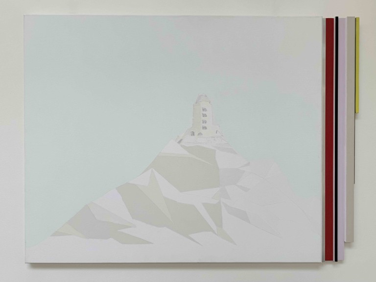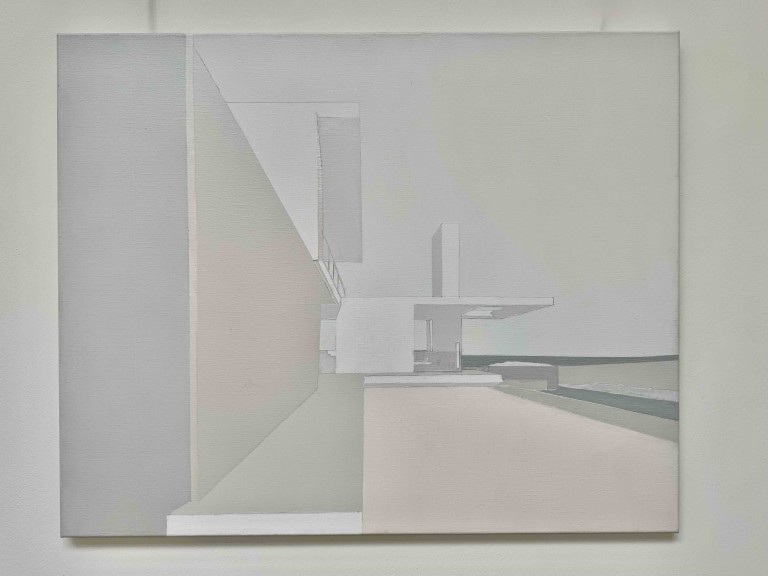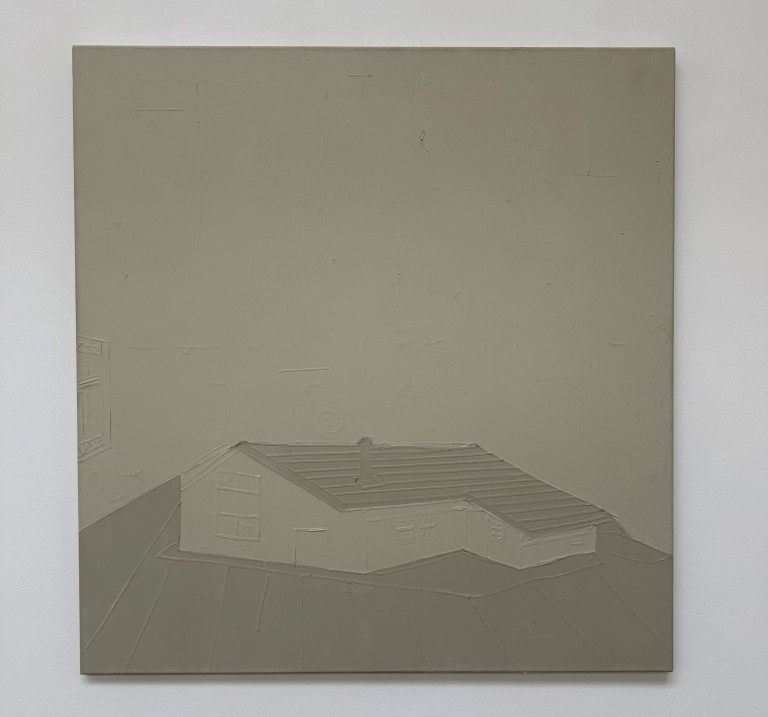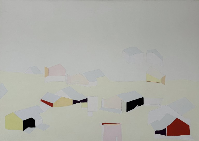 Het interessante is dat er indirect een relatie is ontstaan tussen de snel getimmerde, als het ware met hout getekende, veranderbare huisjes, en de ‘uit de tijd gevallen’ schilderijen, die een soort contemplatieve situatie verbeelden met een terugblik op mijn persoonlijke geschiedenis. Ik ben in Roemenië geboren onder een streng communistisch regime. Een aantal schilderijen is zo neergezet dat het de toestand van het Communistische Roemenië vertelt: vervallen, geruïneerd. Laag over laag geschilderde werken in de kleuren van afgebladerde verf.