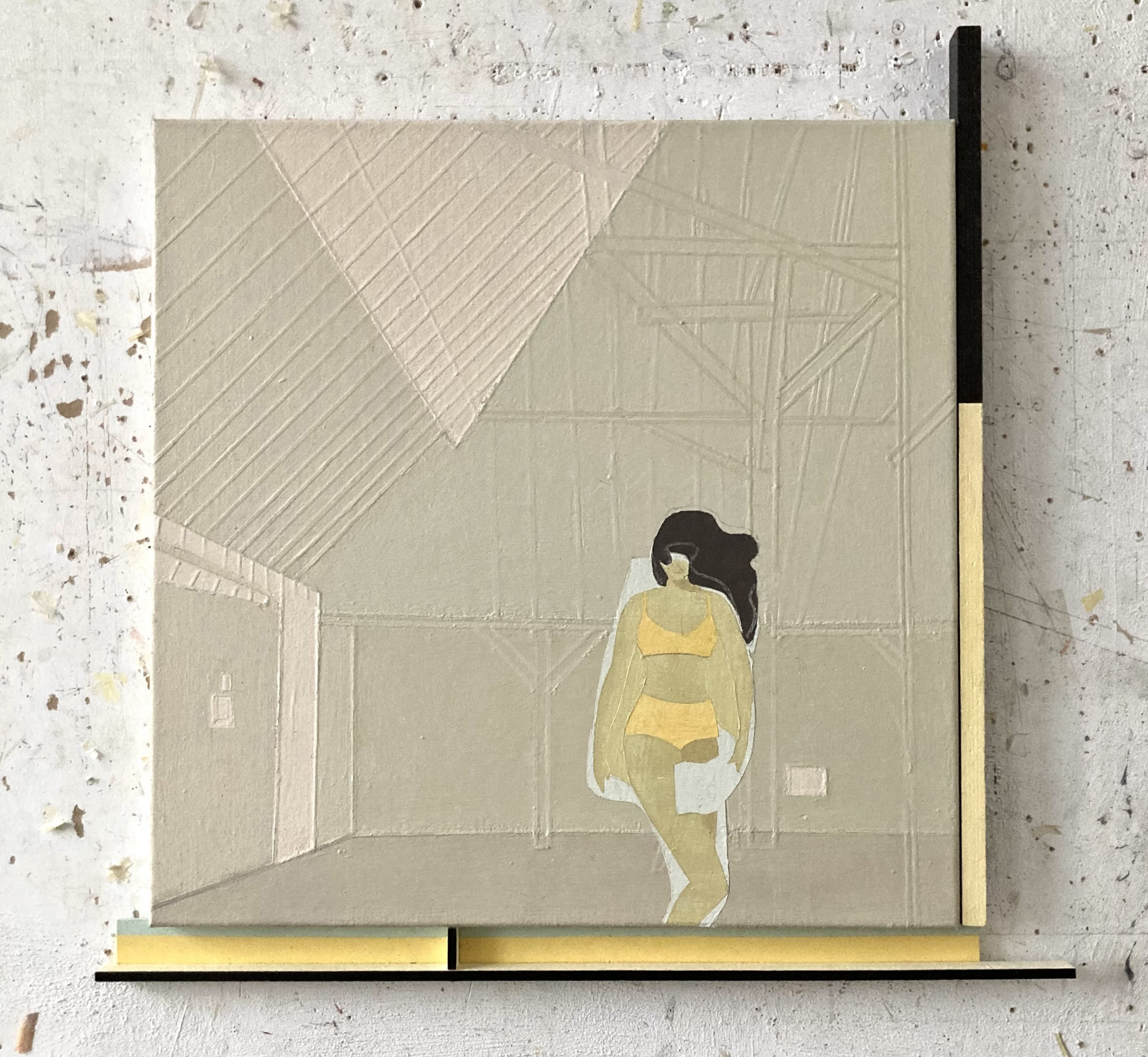 oil paint on canvas, painted wood