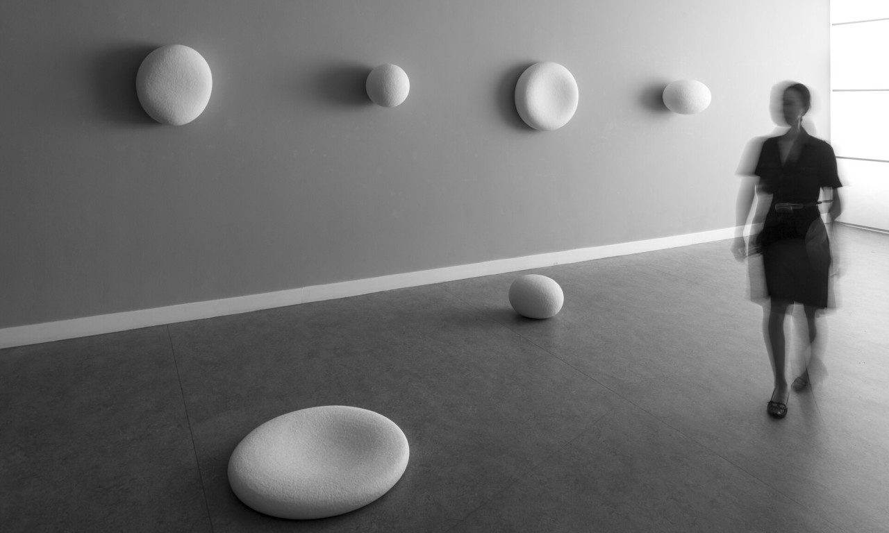 In het werk van Yumiko Yoneda staat de bolvorm centraal. In de subtiele variaties van deze schijnbaar eenvoudige vorm zoekt Yoneda naar de kern van het universele zijn. De bolvorm, de driedimensionale vorm van de cirkel fungeert in allerlei culturen als symbool van perfectie. Er is geen begin en geen eind en is overal gelijk. Het representeert het alles en daarmee ook het niets. Cirkels, ovalen en bolvormige structuren balanceren tussen alles en niets, spreken en zwijgen, kracht en rust. Yoneda streeft naar perfectie, maar juist de menselijke maat en onmacht maken de beelden interessant en identificeerbaar.