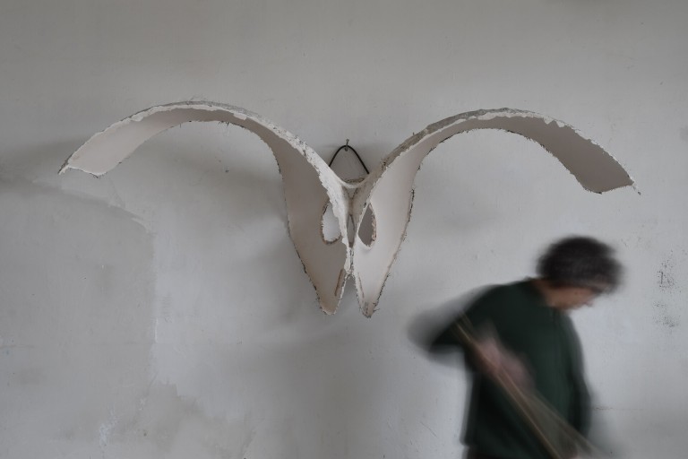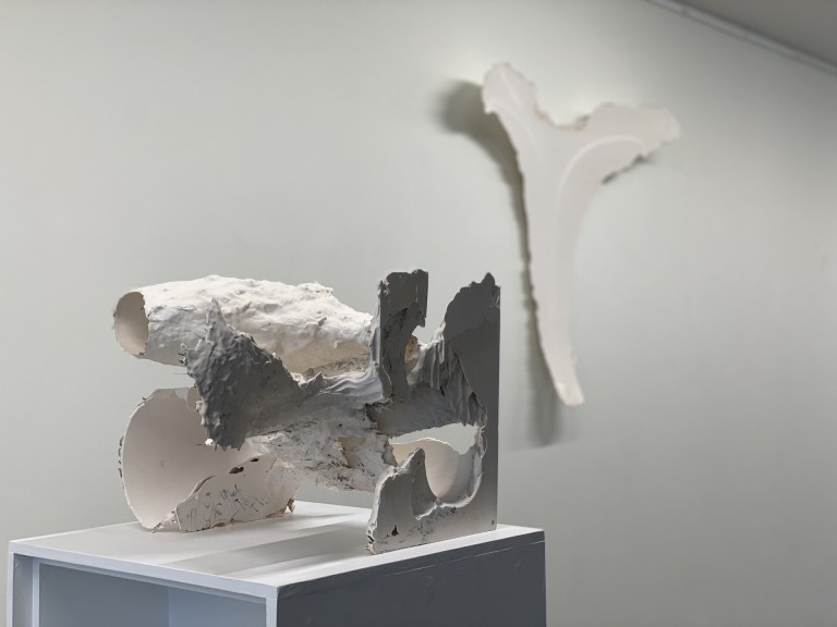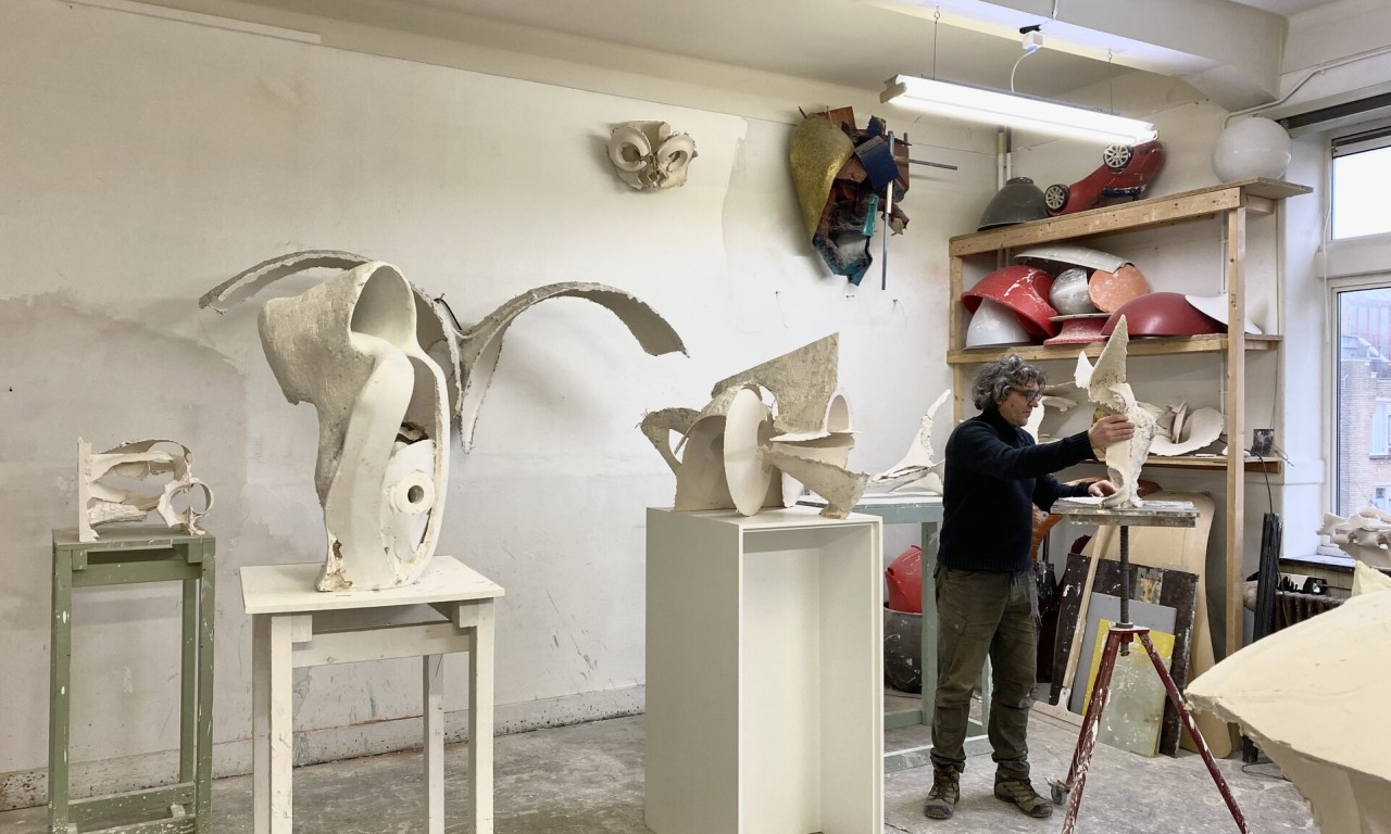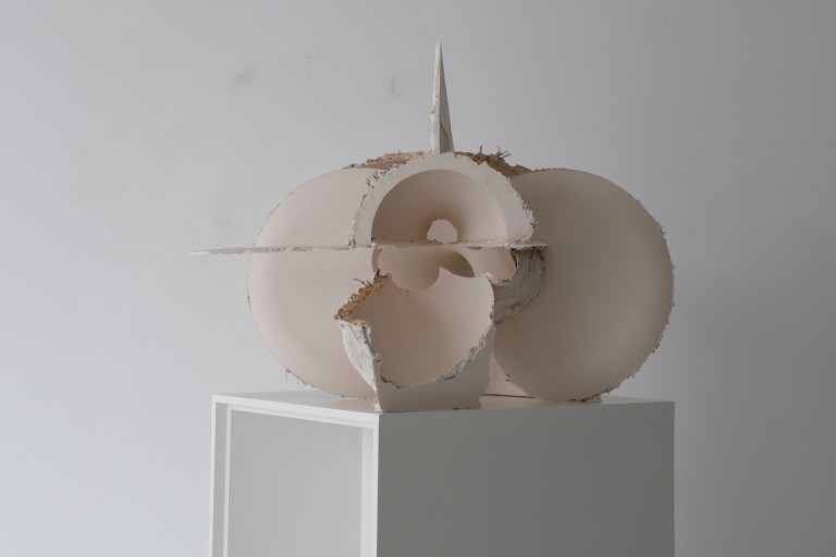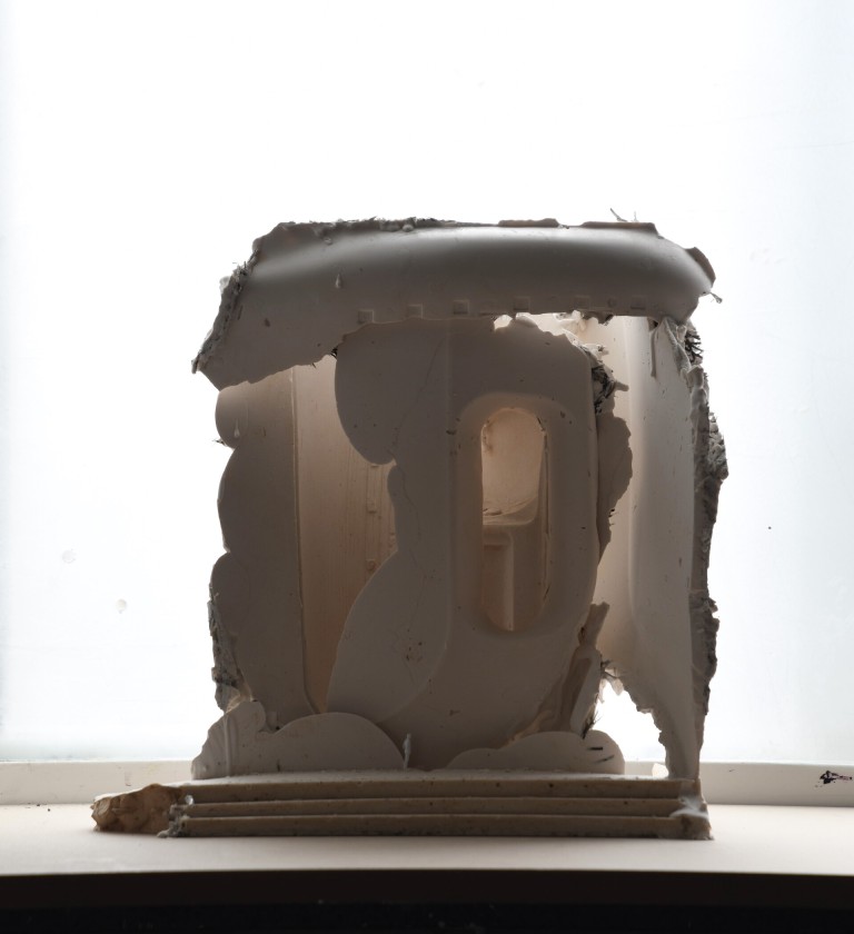 De beeldhouwkunst van André Kruysen (Den Haag 1967) kent tegenstrijdigheden. De sacrale werking van het daglicht staat in schril contrast met de snelle beeldcultuur waarin we leven en die overal in onze leefomgeving opdoemt. Die chaos om ons heen is zijn inspiratiebron, waarin de kunstenaar juist de verstilling zoekt. Zijn werk verraadt ook een ordeloosheid. De beeldhouwwerken van André Kruysen doen denken aan de toevallige stapeling van afval langs de weg, of andere informele bouwwerken. Of aan de opeengestapelde vlakken van het Russische constructivisme of de architectuur van bijvoorbeeld Daniel Libeskind. Tegelijkertijd is het werk het resultaat van een gedetailleerd onderzoek naar de werking tussen ruimte, licht en materiaal, tezamen tot monumentale, vloeiende architectonische beeldhouwwerken gecomponeerd.