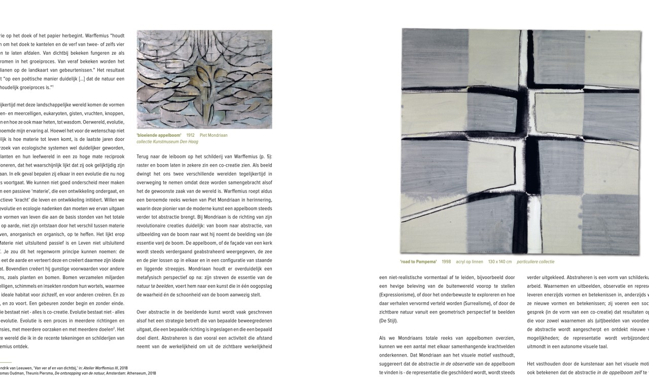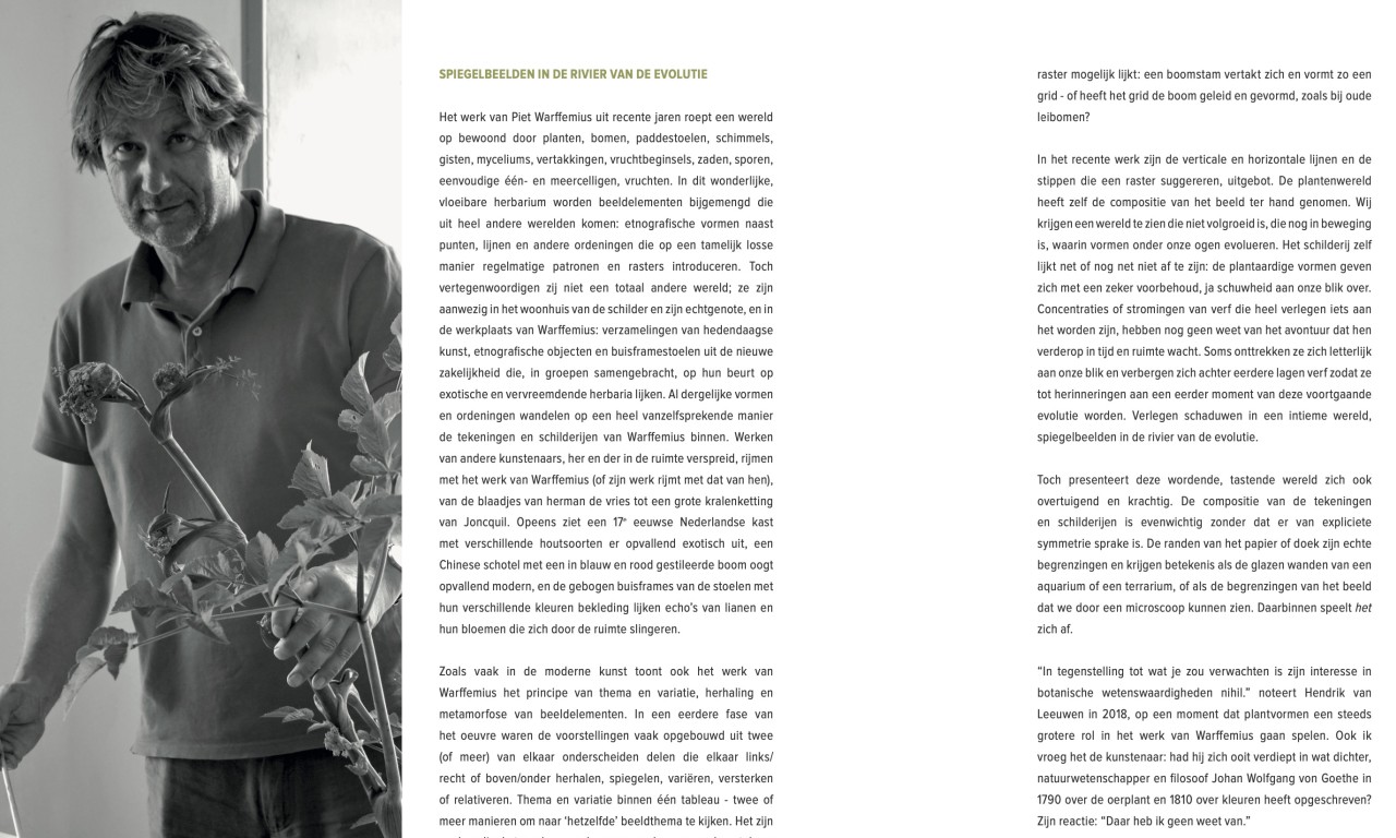 De natuur is een belangrijk thema in het veelzijdige oeuvre van Warffemius (Den Haag 1956). In veel van zijn werken zien we verwijzingen naar planten en bomen. Vaak is de abstractie ver doorgevoerd met als resultaat eenvoudig gestileerde bomen en stammen met enkele takken, soms met een blad eraan. Teruggebracht tot hun essentie.