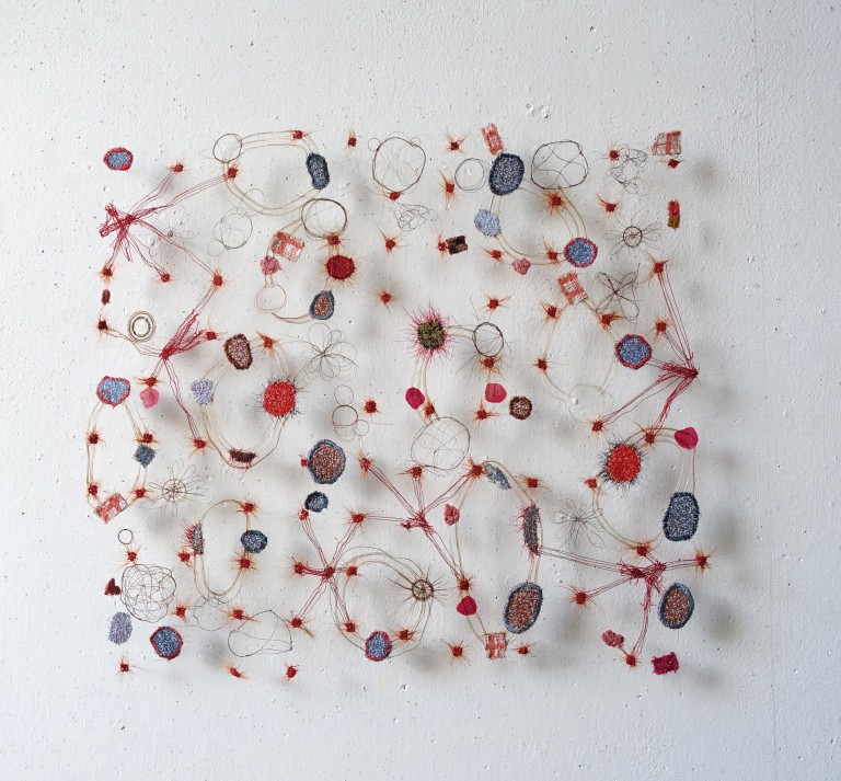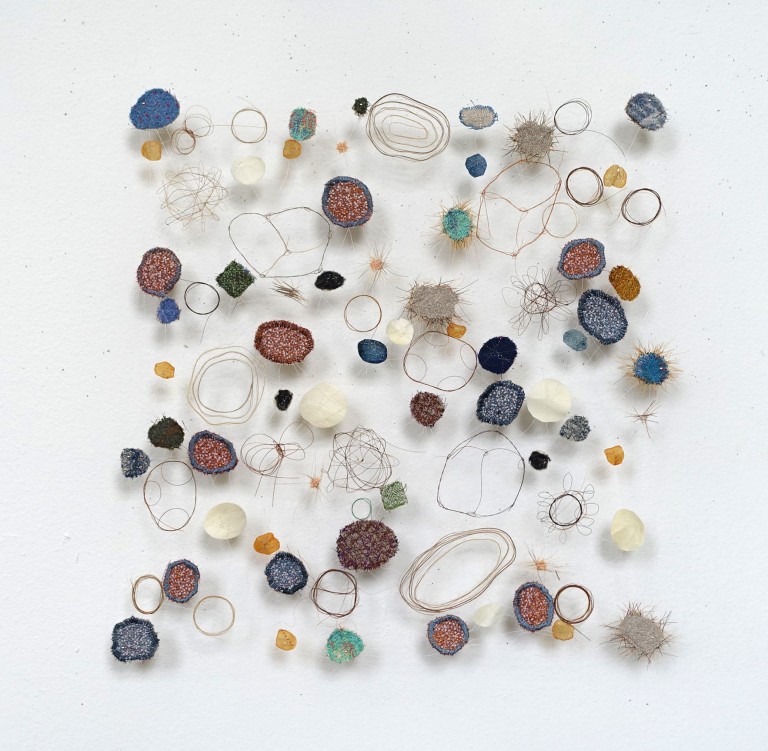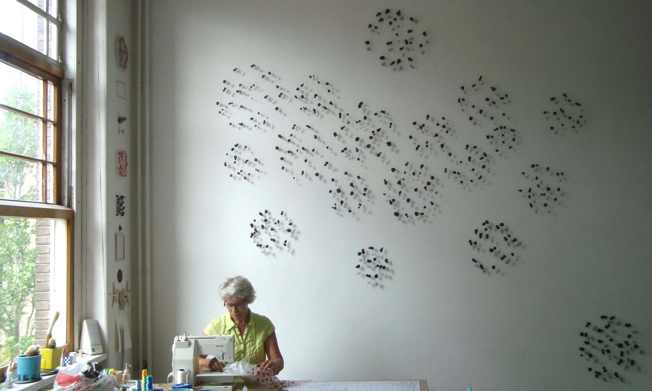 Als het atelierbezoek is afgelopen, trekt Marian Bijlenga (1954) opeens uit een nis bij de deur een plaat van een systeemplafond tevoorschijn. Die is wit en in een onontwarbaar patroon bespikkeld met kleine gaatjes. “Kijk nou eens,” zegt ze, “wat een chaos en toch zit er systeem in. Daarom ben ik zo dol op de chaostheorie want je kunt ook in wanorde altijd eenstructuur ontdekken.