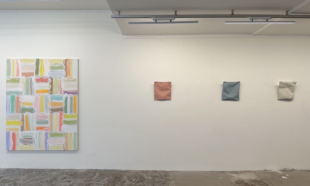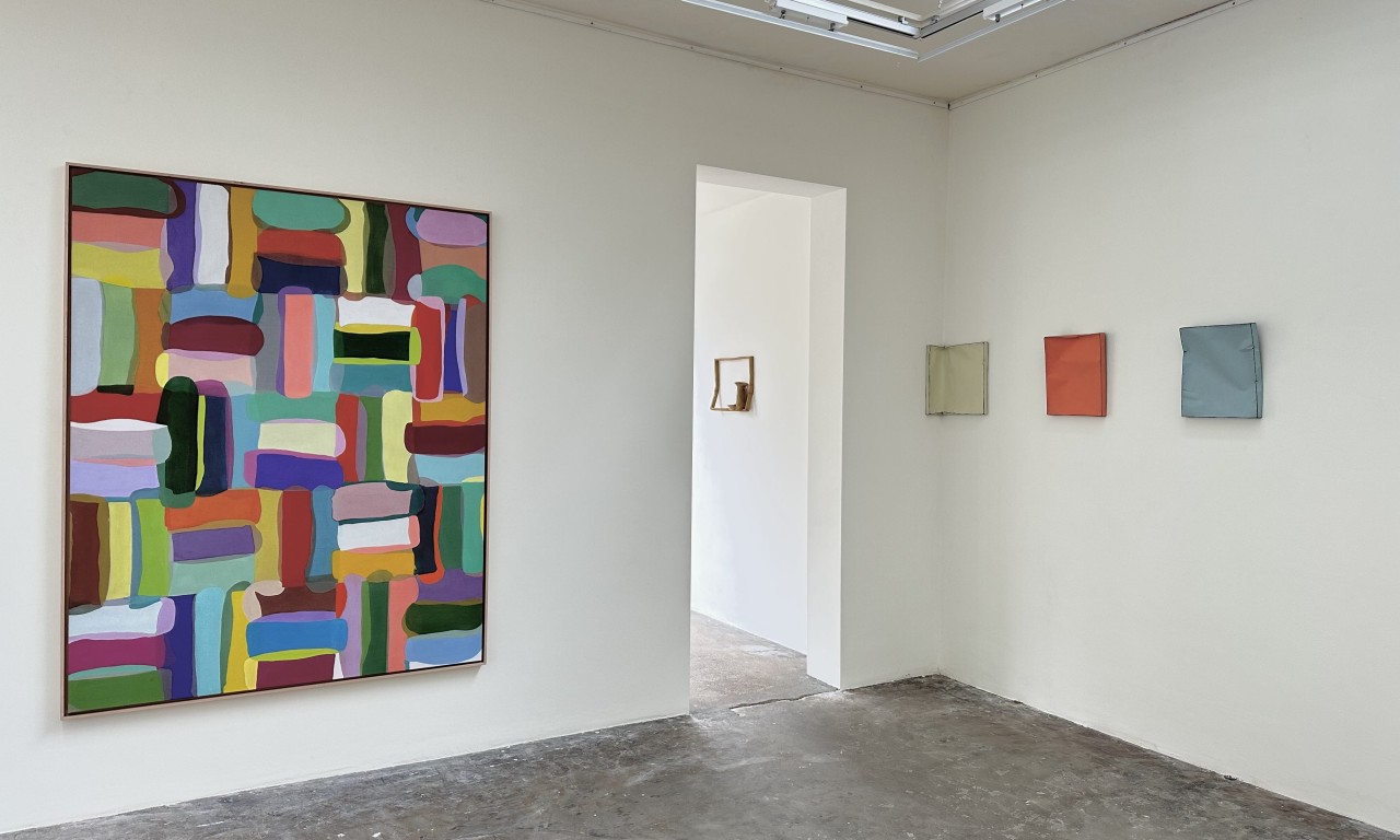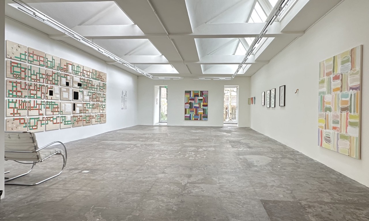 ‘Notities’ noemt ze de kleine werken. In haar atelier hangen er 59 in een rechthoekige formatie boven en naast elkaar. Het is een bron, een voorschot op wat komen gaat. Elk schilderijtje kan de aanleiding zijn voor een nieuwe serie abstracte doeken. Kán. ‘Want als ik er niets in zie, span ik ze af.’