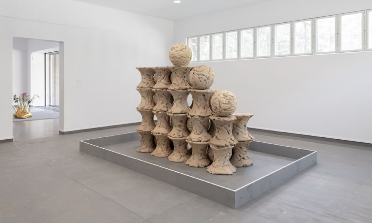 Geelen verankert keramiek stevig in de beeldende kunst. Zijn werkwijze raakt aan dat van minimal art kunstenaars als Carl Andre en Donald Judd. De grote beelden in deze presentatie bestaan uit ritmisch gestapelde losse elementen. Volume, ruimtewerking en verdeling van massa staan centraal. De groene, bruine, grijze en roze druipers van Zonder titel (N.G.I.1991, R&S93602 en 8B.C.) lijken een verwijzing naar de schilderijen van de abstract-expressionistisch schilder Jackson Pollock.